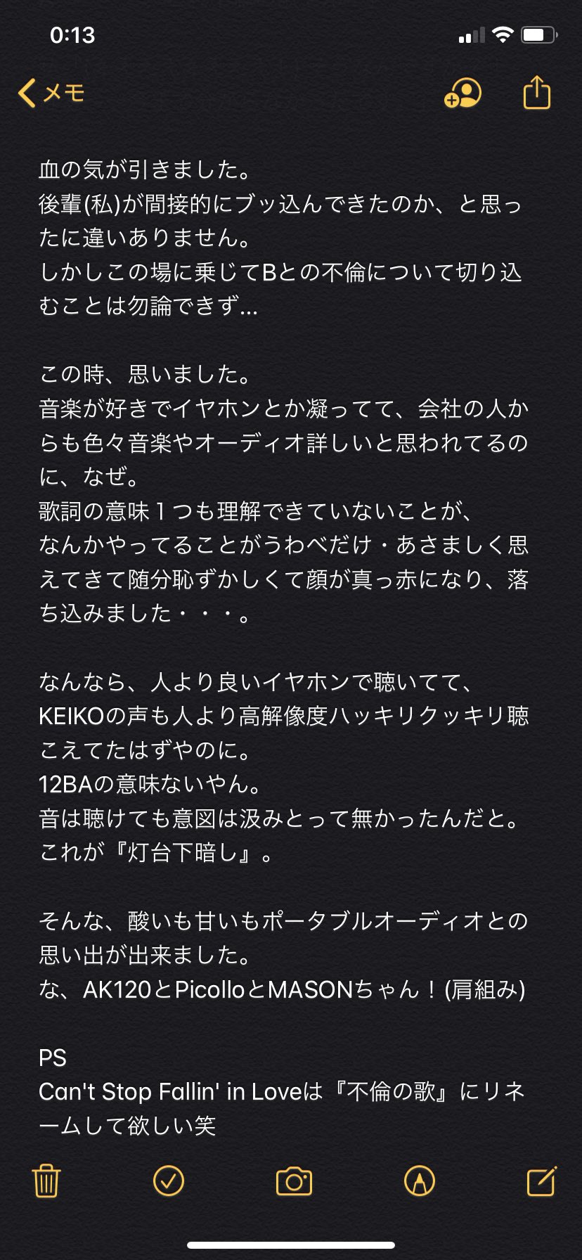 ハイライトとメンソール On Twitter 酸いも甘いも ポータブルオーディオ と共に歩む Ak120 Picollo Um Mason と Globe Can T Stop Fallin In Love いつもは 指輪をはずしていたのに どうして 昨日は腕も組んでいたの あなたが待ち合わせ決めた場所なのに