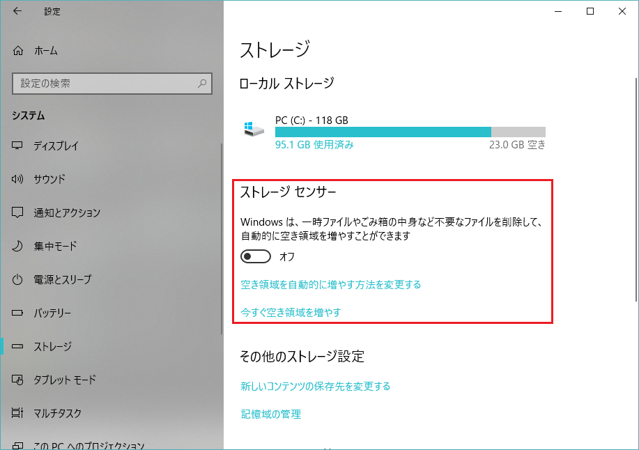 Windows10 不要ファイルの削除ツール ストレージセンサー Windowsと暮らす