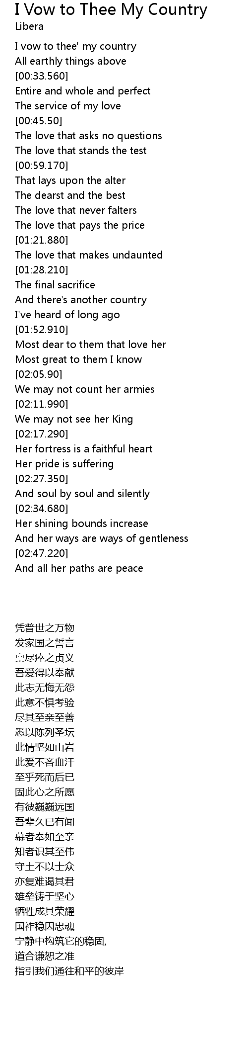 I Vow To Thee My Country Lyrics Follow Lyrics