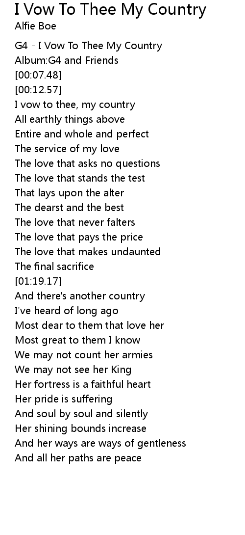 I Vow To Thee My Country Lyrics By G4 I Vow To Thee