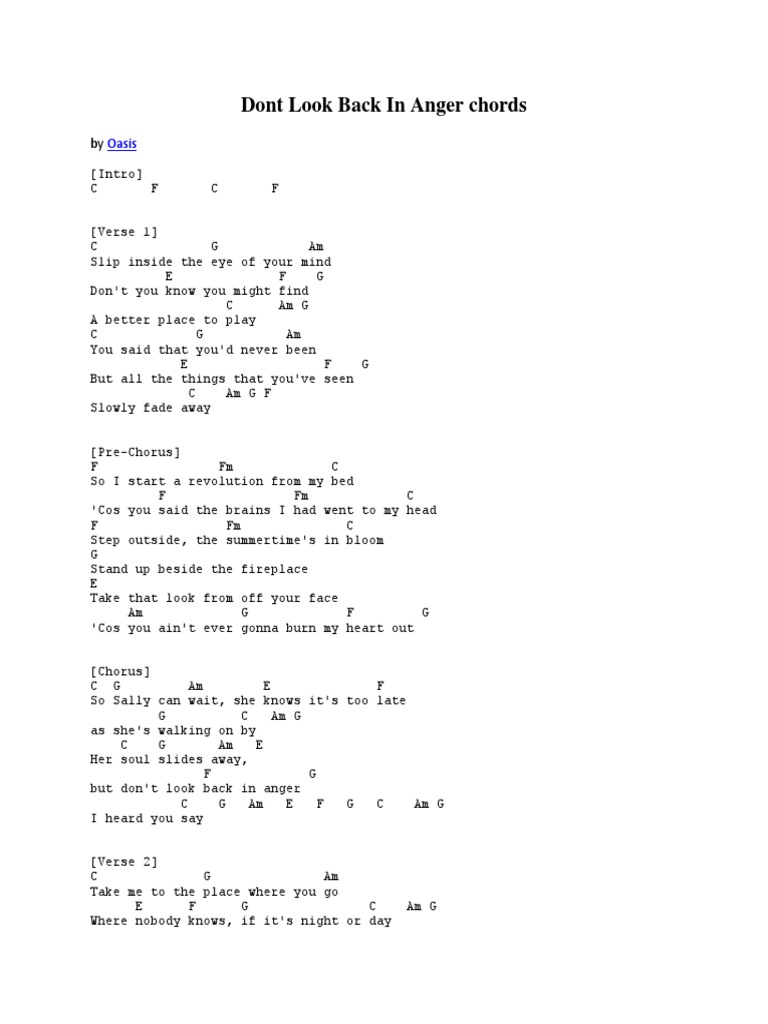 Oasis Don T Look Back In Anger Pdf Songs Written