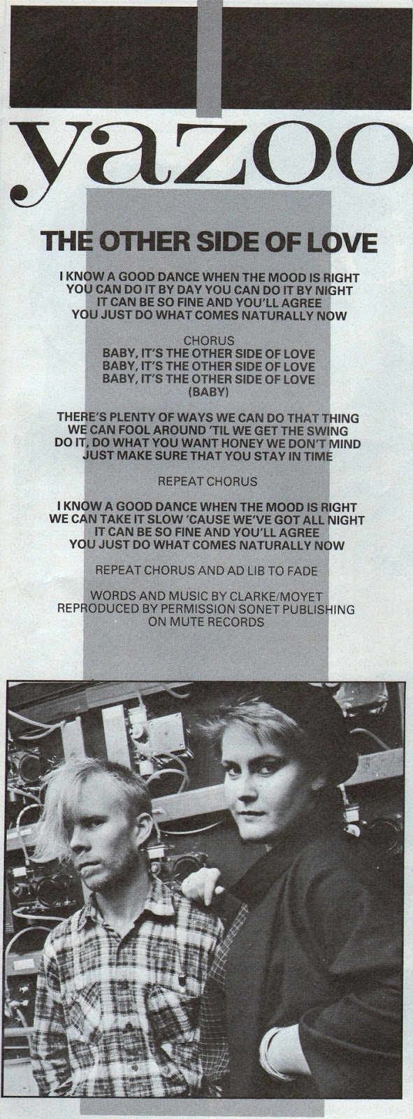 Lyrics The Other Side Of Love Yazoo Yaz Discography Vince Clarke Alison Moyet